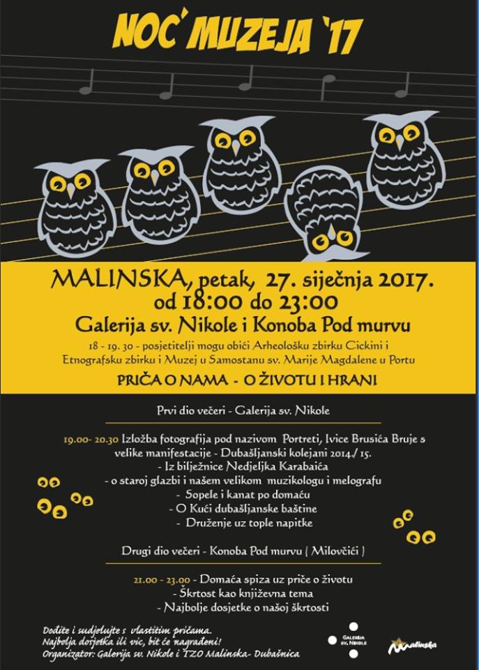 Noć muzeja održati će se već tradicionalno i na području Općine Malinska – Dubašnica, u petak 27. siječnja 2017. godine.