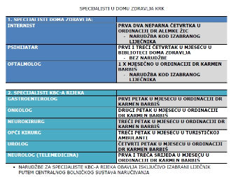Kao što smo objavili i ranije tako i ovog puta objavljujem raspored dolazaka specijalista u krčki Dom zdravlja. Raspored dolazaka se nalazi u privitku.
