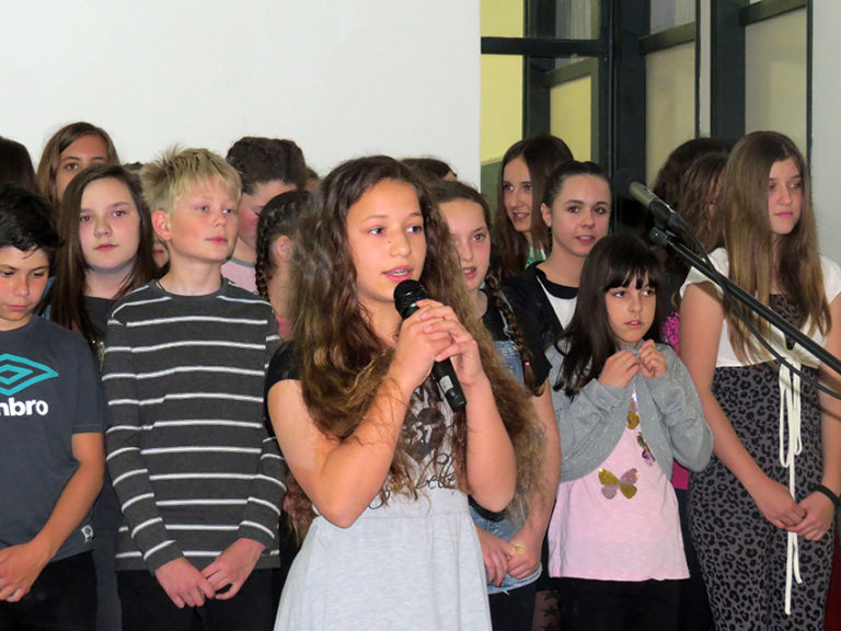Život nije siv izveo je školski zbor, a stihove Stjepana Jakševca Zlatna zraka sunca govorila je Lucija Tadejević, učenica 5. b razreda.