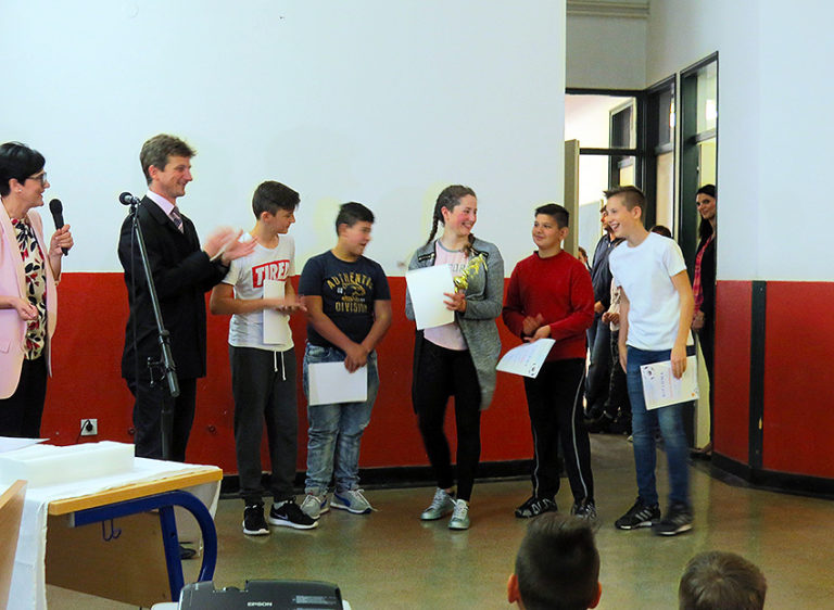 Najsvečaniji dio programa bila je dodjela nagrada i priznanja učenicima koji su ove godine uspješno sudjelovali na županijskim natjecanjima. Nagrade su uručili ravnateljica Škole i načelnik Općine. Vrijednim knjigama nagrađeni su Karolina Kraljić (informatika i geografija), Laura Božić (informatika i geografija), Mia Šimić (geografija), Katarina Lesica (informatika), Matija Badurina (informatika), Daniel Duda (informatika), Luka Badurina (informatika), Andrijan Kovačić (njemački jezik), Lucija Linardić (matematika), Ana Miletić (fizika i biologija), Laura Žužić (tehnička kultura) i Dora Lazar (tehnička kultura).