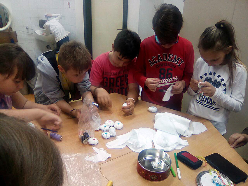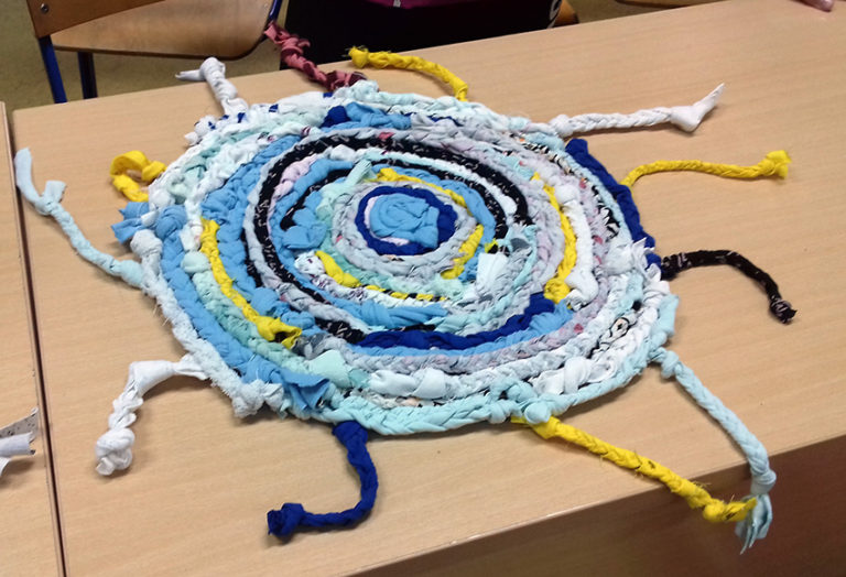 Učenici iz 3.a razreda, zajedno sa svojom učiteljicom Ivonom, izrađivali su ukrasne predmete od starih majica koje su rezali na trakice, ispleli u pletenice i dalje spajali… Osim lijepih broševa kojima će iznenaditi svoje mame za Majčin dan, u ovoj su radionici izradili i