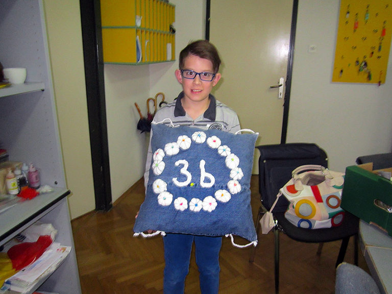 I učenici 3. b razreda, sa učiteljicom Ana Marijom, isto su bili jako kreativni. Za eko natječaj izradili su vrlo interesantan ukrasni jastuk od recikliranih materijala, sa puno lijepih i maštovitih detalja koji su izrađeni s puno truda i mašte. Osim jastuka, u radionici su nastali i pokloni za Majčin dan; broševi, prsteni i narukvice.