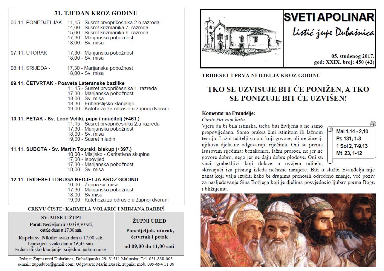 Listić svetoga Apolinara, Župa, Župa Dubašnica, Župa Svetog Apolinara, Župni listić
