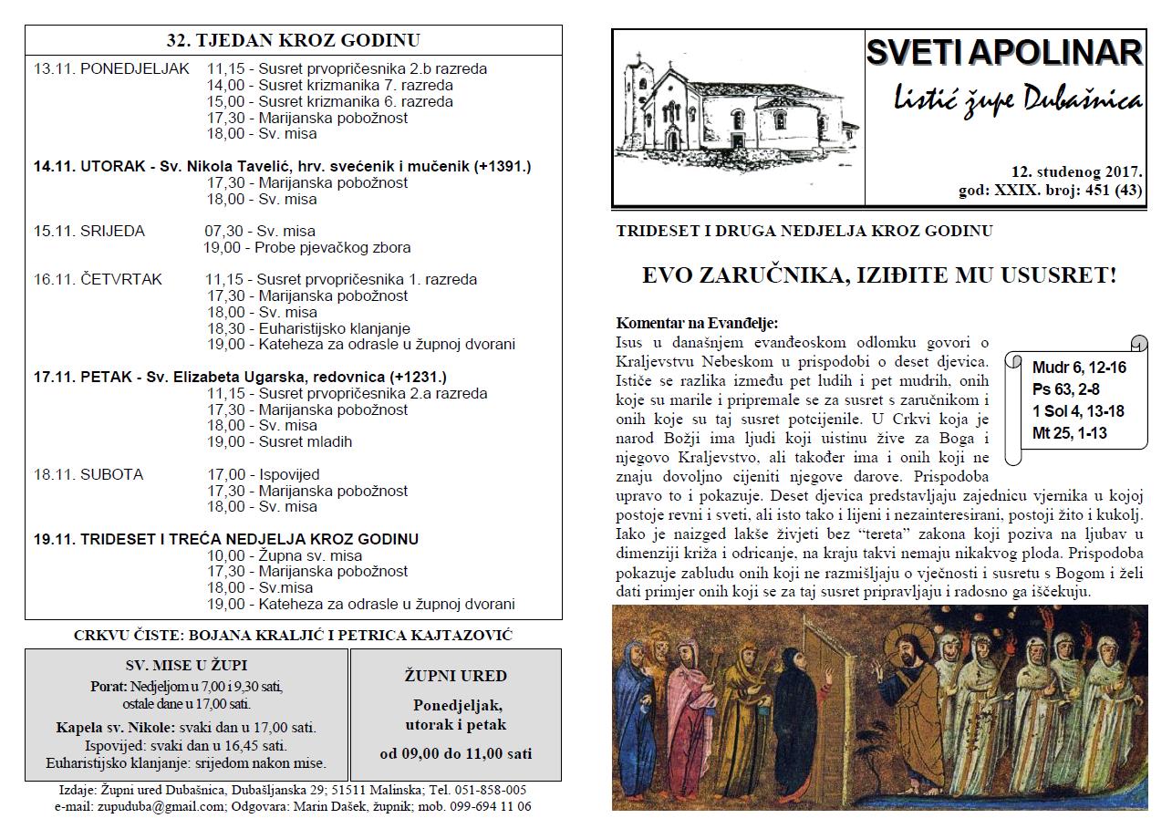 Listić svetoga Apolinara, Župa Dubašnica, Župa Svetog Apolinara, Župni listić