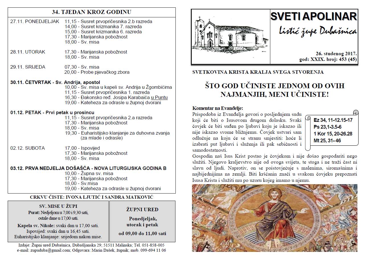 Listić svetoga Apolinara, Sveti Apolinar, Župa Dubašnica, Župa Svetog Apolinara, Župni listić