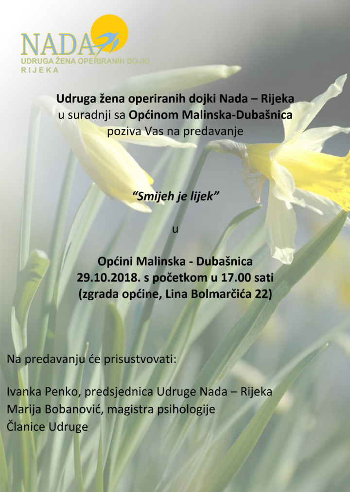 Obavijesti Udruga Nada – Smijeh je lijek! 25. listopada 2018.28. listopada 2018.1 min read Općina Malinska - Dubašnica Post Views: 347 Share