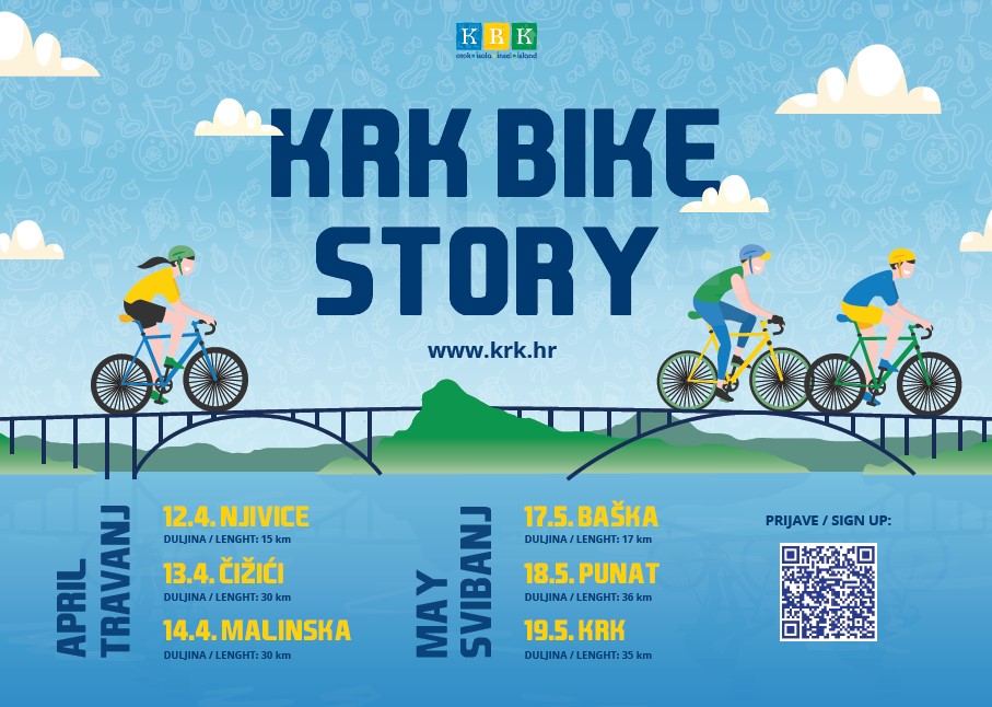 “KRK BIKE STORY“ promotivna je kampanja svih turističkih zajednica na otoku Krku koja promovira doživljaj aktivnog odmora na otoku. Od vođenih tura za obitelji i rekreativce, do ozbiljnih ruta za one koji intenzivnije treniraju – u travnju i svibnju na Krku svatko može pronaći biciklističku priču za sebe.