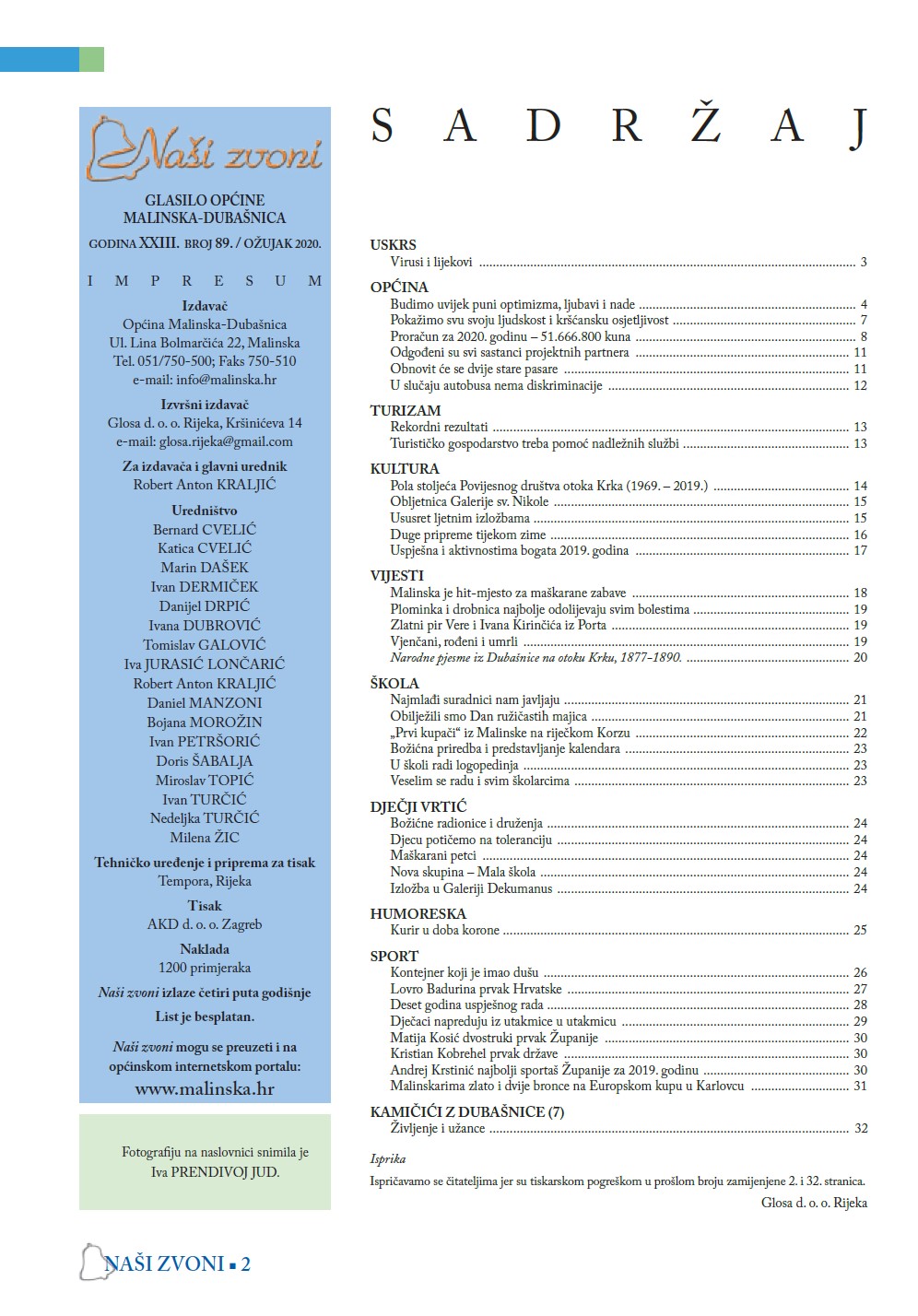 Zbog pandemije izazvane virusom COVID-19 ovaj broj glasila Naši zvoni izaći će samo u ON-LINE izdanju.