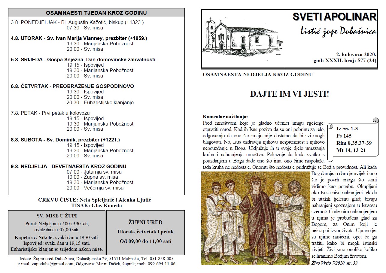 Župa Svetog Apolinara 18. nedjelja kroz godinu 2. kolovoza 2020.8. kolovoza 2020.1 min read Općina Malinska - Dubašnica Post Views: 226 Share