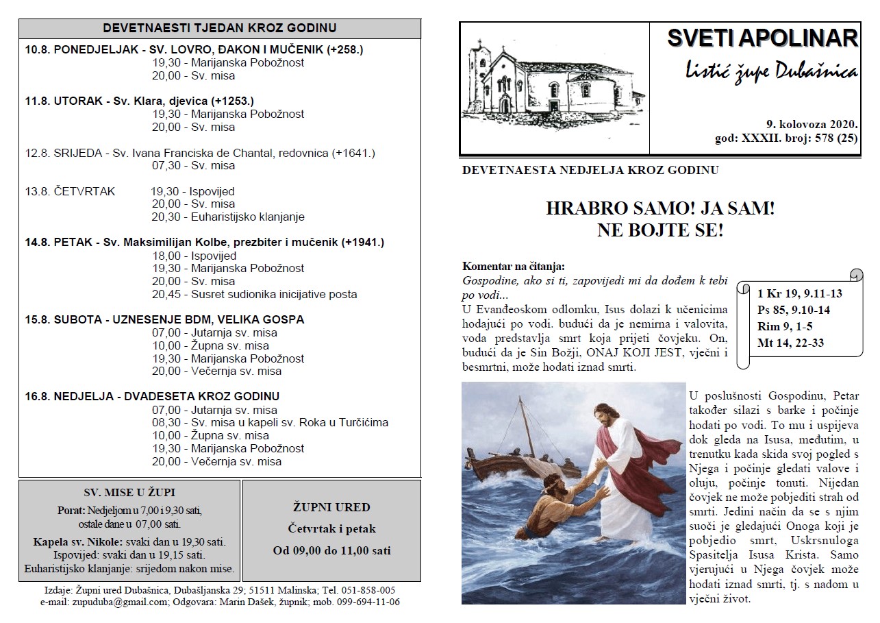 Župa Svetog Apolinara 19. nedjelja kroz godinu 9. kolovoza 2020.9. kolovoza 2020.1 min read Općina Malinska - Dubašnica Post Views: 131 Share