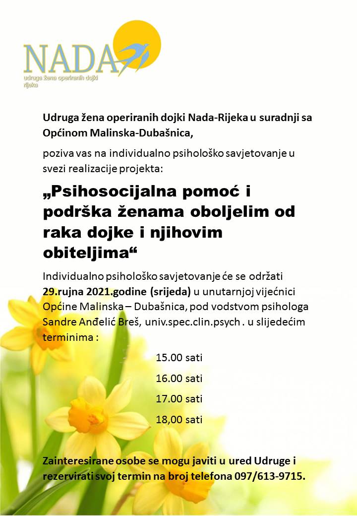 • Psihosocijalna pomoć i podrška ženama oboljelima od raka dojke i njihovim obiteljima