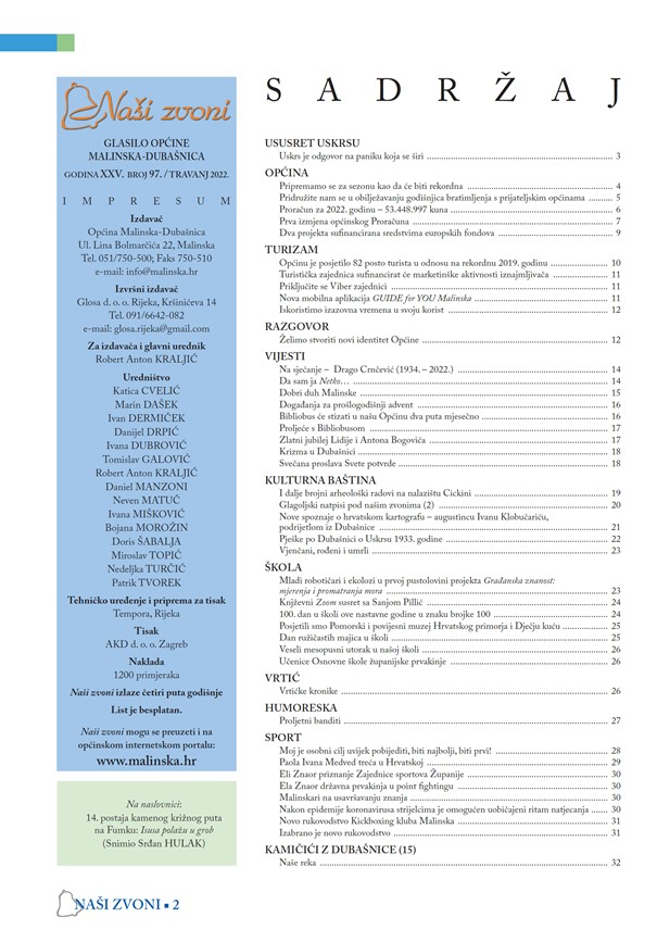 Izašao je novi broj Općinskog glasila “Naši zvoni” broj 97. Izdanje možete preuzeti ovdje. (PDF)