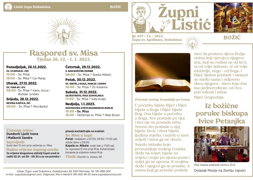 Župa Svetog Apolinara Božić 24. prosinca 2022.1 min read Općina Malinska - Dubašnica Preuzmite: Listić Svetog Apolinara (PDF) Post Views: 329 Share