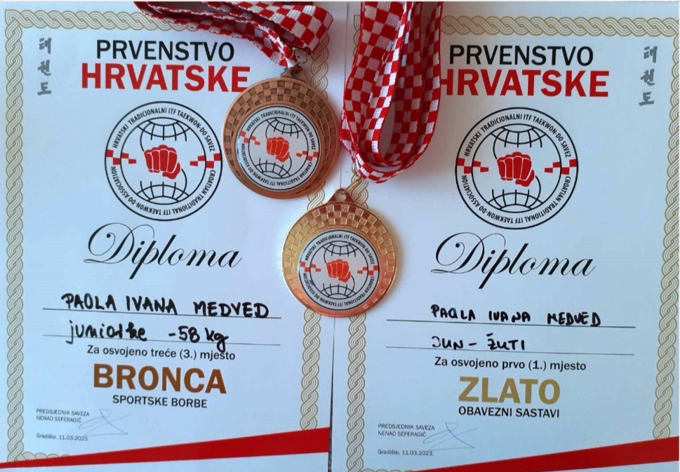 Paola Ivana Medved učenica Osnovnoj školi Malinska – Dubašnica i članica kluba Taekwondo Rijeka, Kickboxing klub Sušak iz Gradišta se vratila sa dvije osvojene medalje.