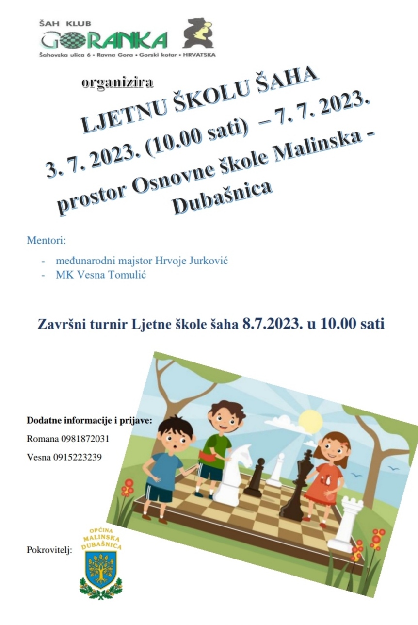 • Ljetna škola šaha 3.7. – 7.7. 2023.