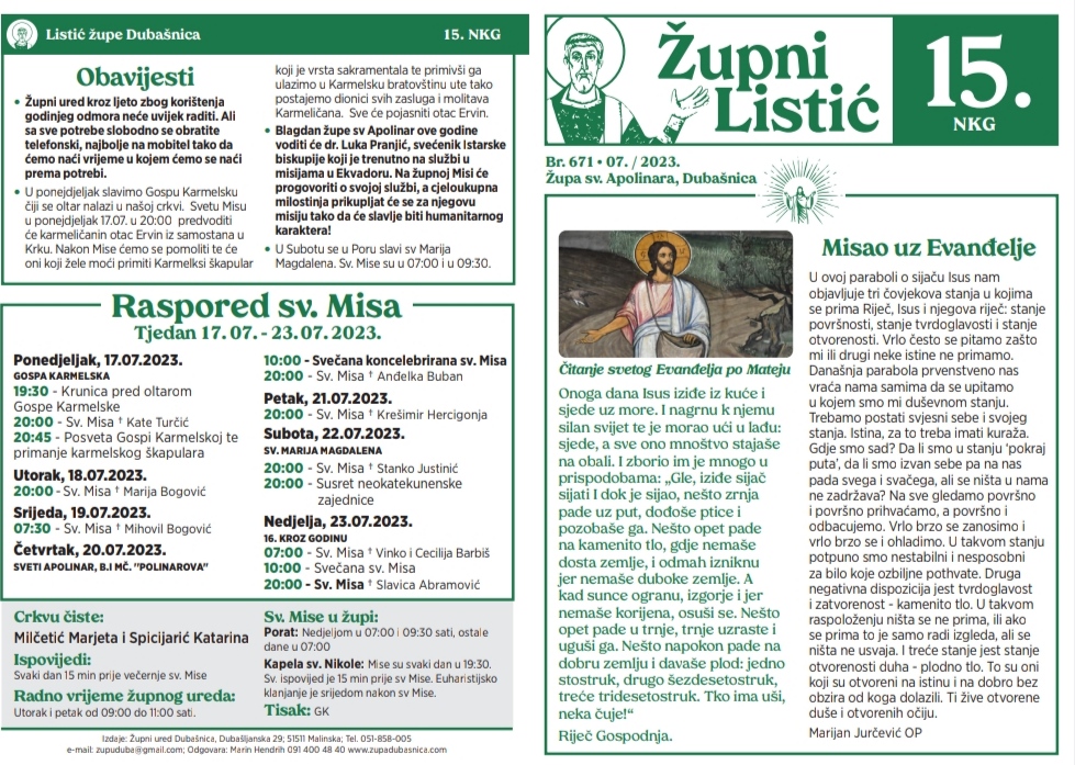 • 15. nedjelja kroz godinu