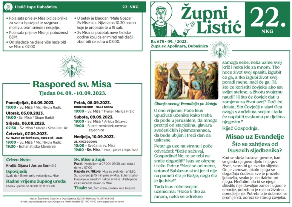 Župa Svetog Apolinara 22. nedjelja kroz godinu 4. rujna 2023.6. rujna 2023.1 min read Općina Malinska - Dubašnica Preuzmite: Listić svetog Apolinara (PDF) Post Views: 110 Share