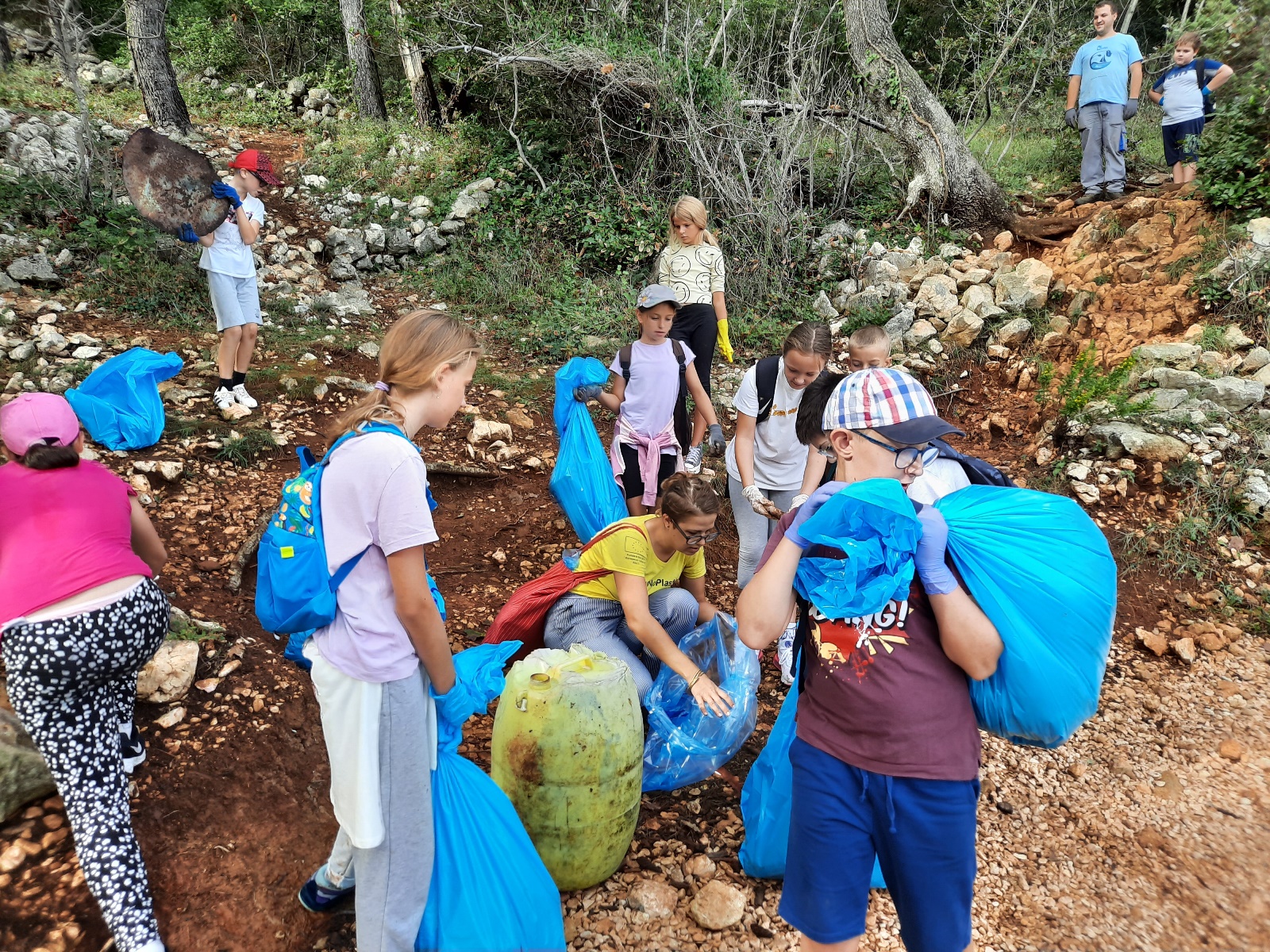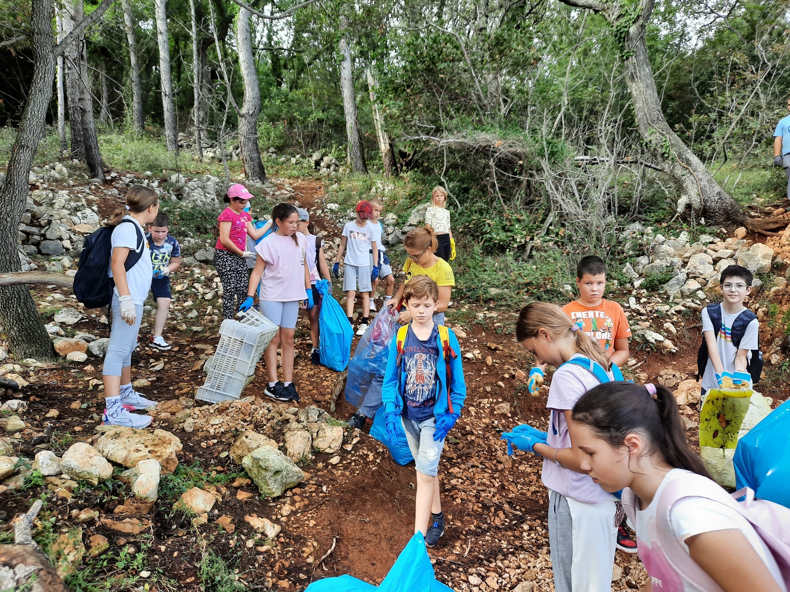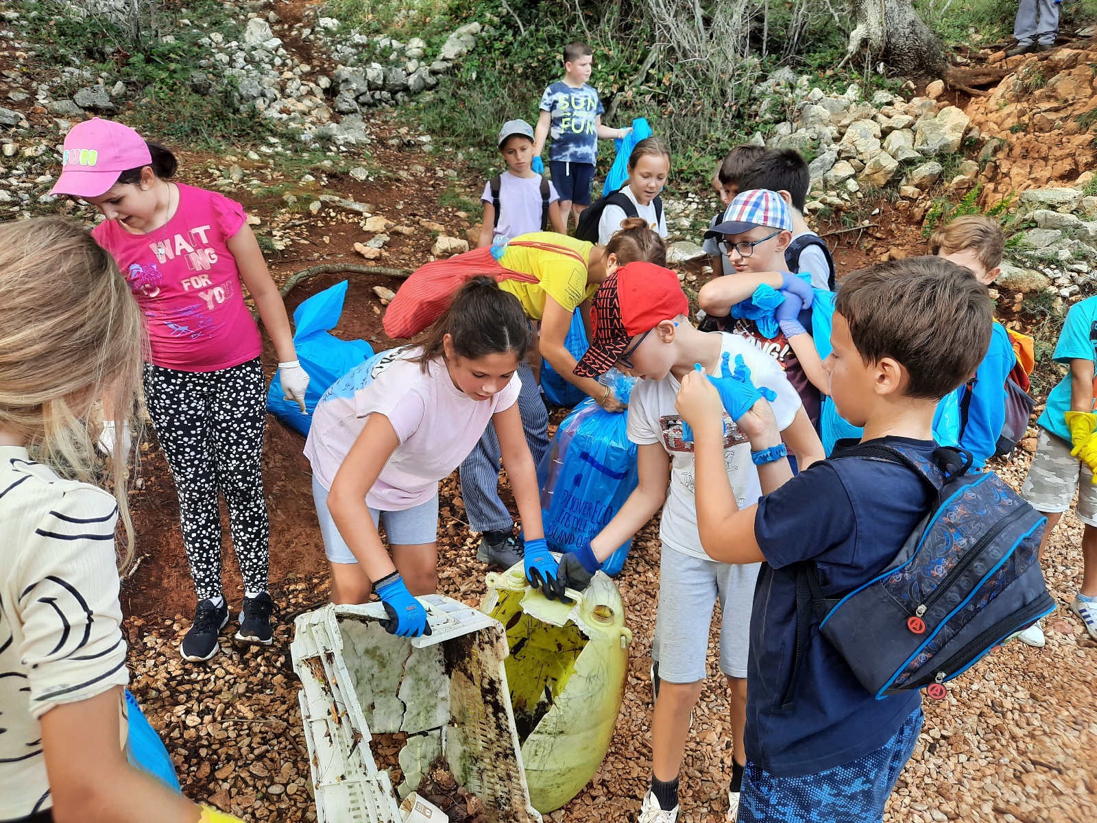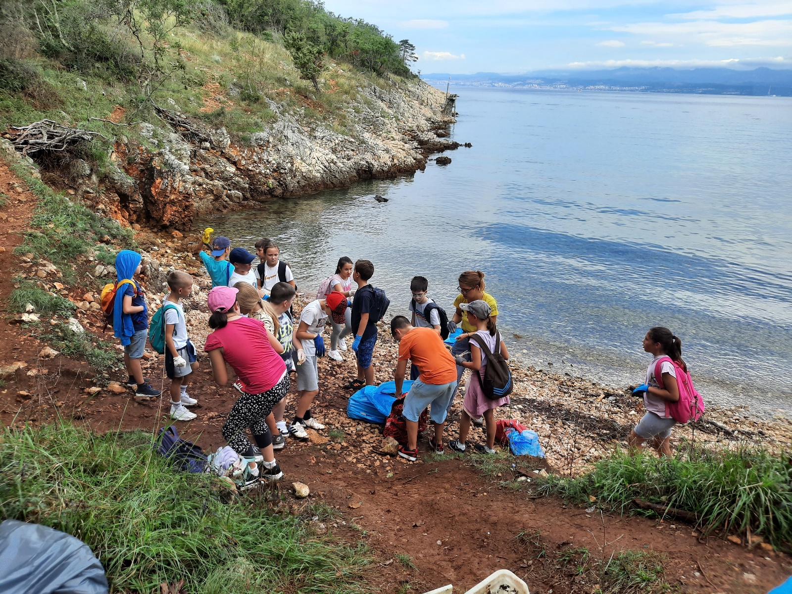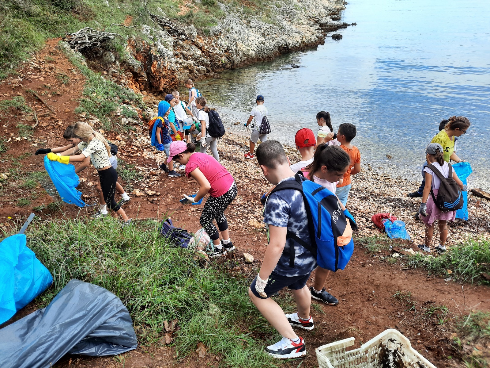 Također, učenici su bili upoznati i s „Plavom vrećom” u koju su kasnije, tijekom same akcije, prikupili naplavine i druge vrsta otpada, posebno plastike. Učenici su na lokaciju došli turističkim vlakićem te su se rasporedili po plažama, od plaže Uhlić do punte Pelove..