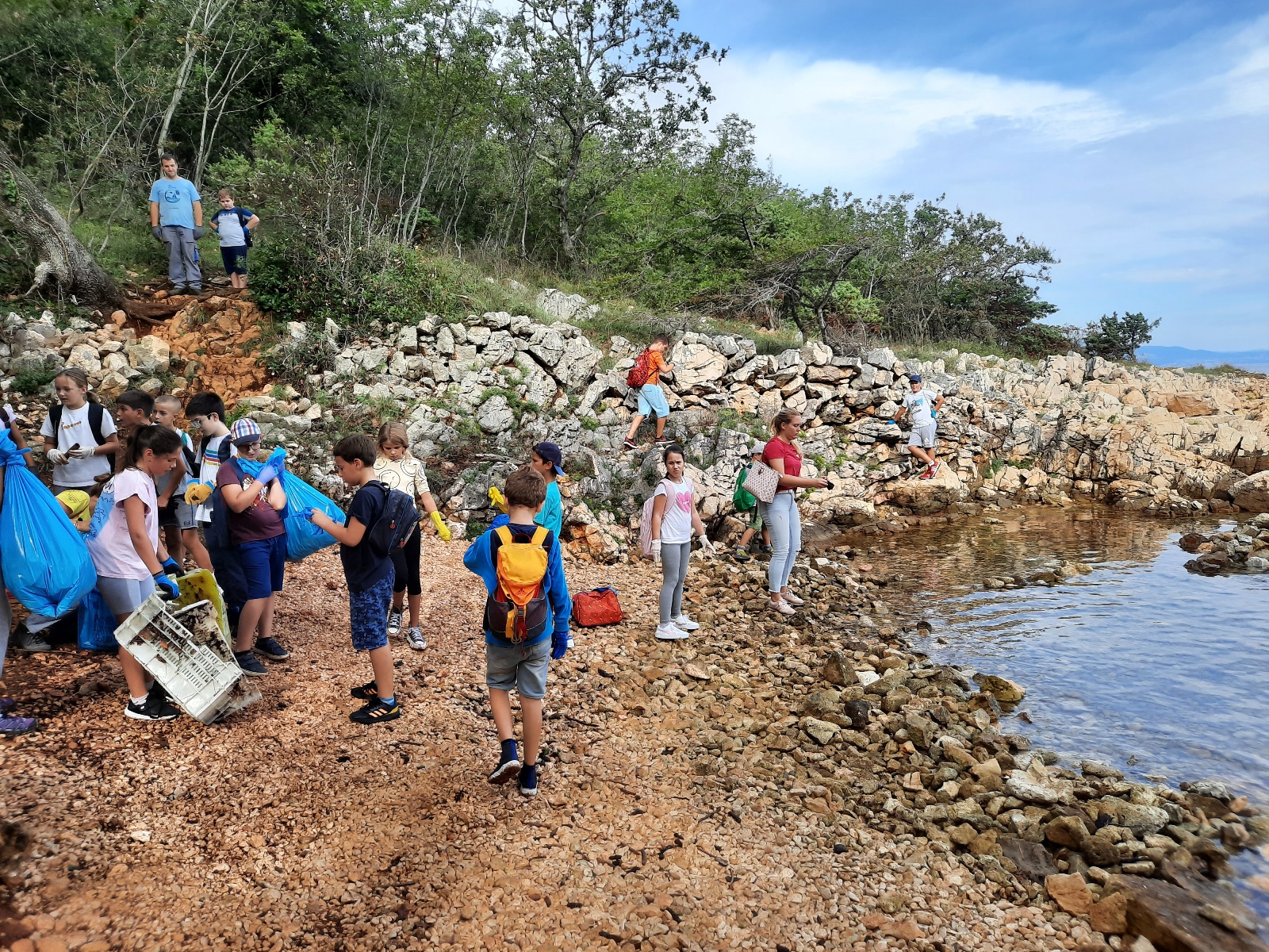U provedbi akcije čišćenja krčkih plaža, koja se i ove godine odvijala u sklopu World CleanUp Daya i u suradnji s poduzećem Ponikve, malinskarski su četvrtaši, u petak, 15. rujna, čistili obalno područje između plaže Uhlić, u Portu, i punte Pelove.
