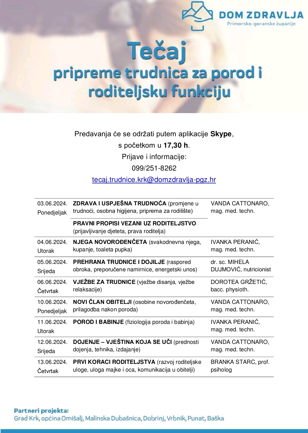 • Tečaj pripreme trudnica za porod i roditeljsku funkciju