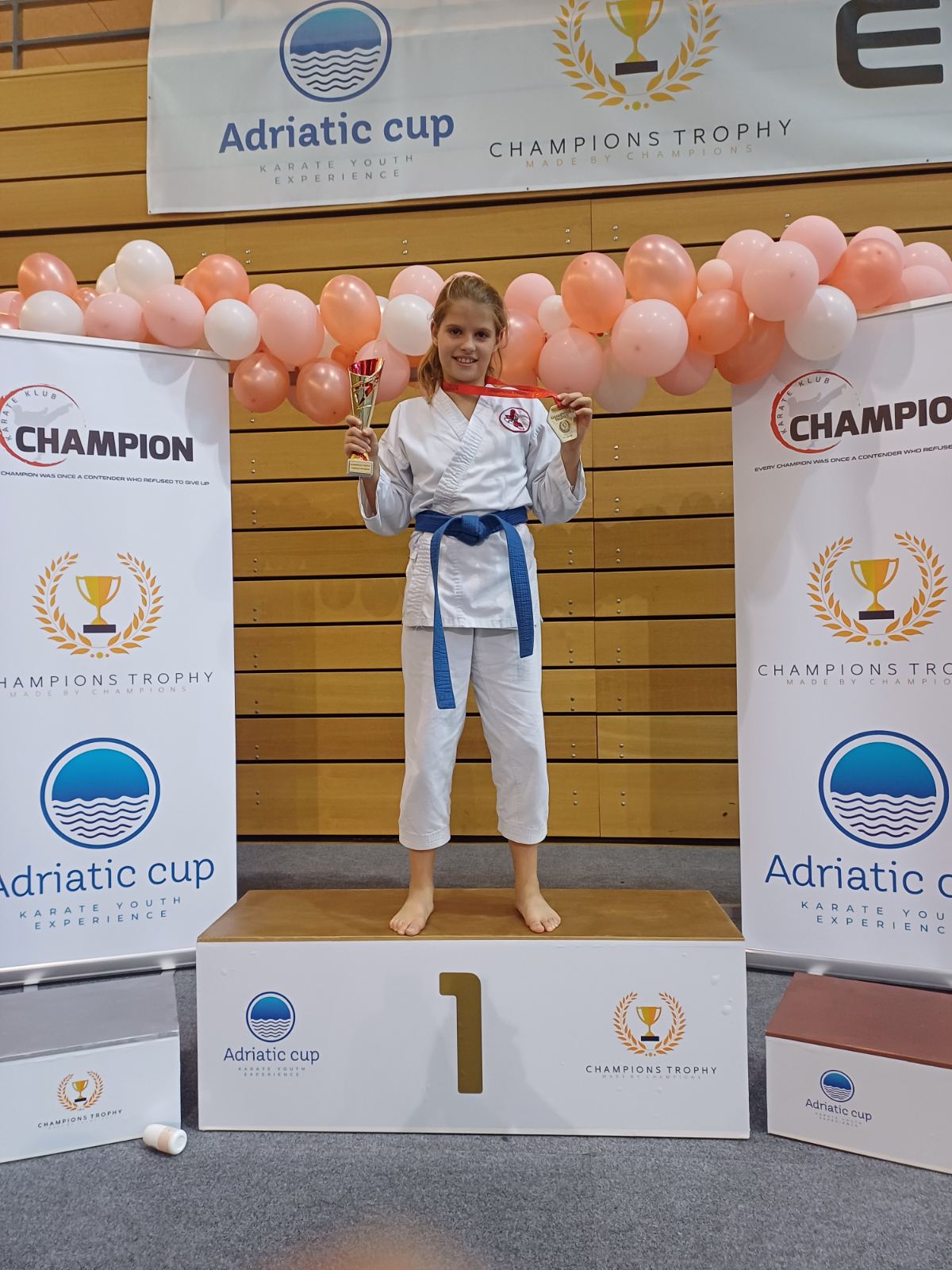 U sjajnom finalnom meču Champions Trophy turnira Lucija Bagara jakim napadima i ustrajnom taktikom uspijeva se popest na najviše postolje kategorije mlađih učenica +43, ali za našu Luciju to nije bio kraj. Kako je ovo natjecanje osim borbi s vršnjacima pružalo priliku i da se natjecatelji okušaju u borbi sa svojim roditeljima, Luciju je za svoju zlatnu medalj i pehar na borbu izazvao njen tata Pero.