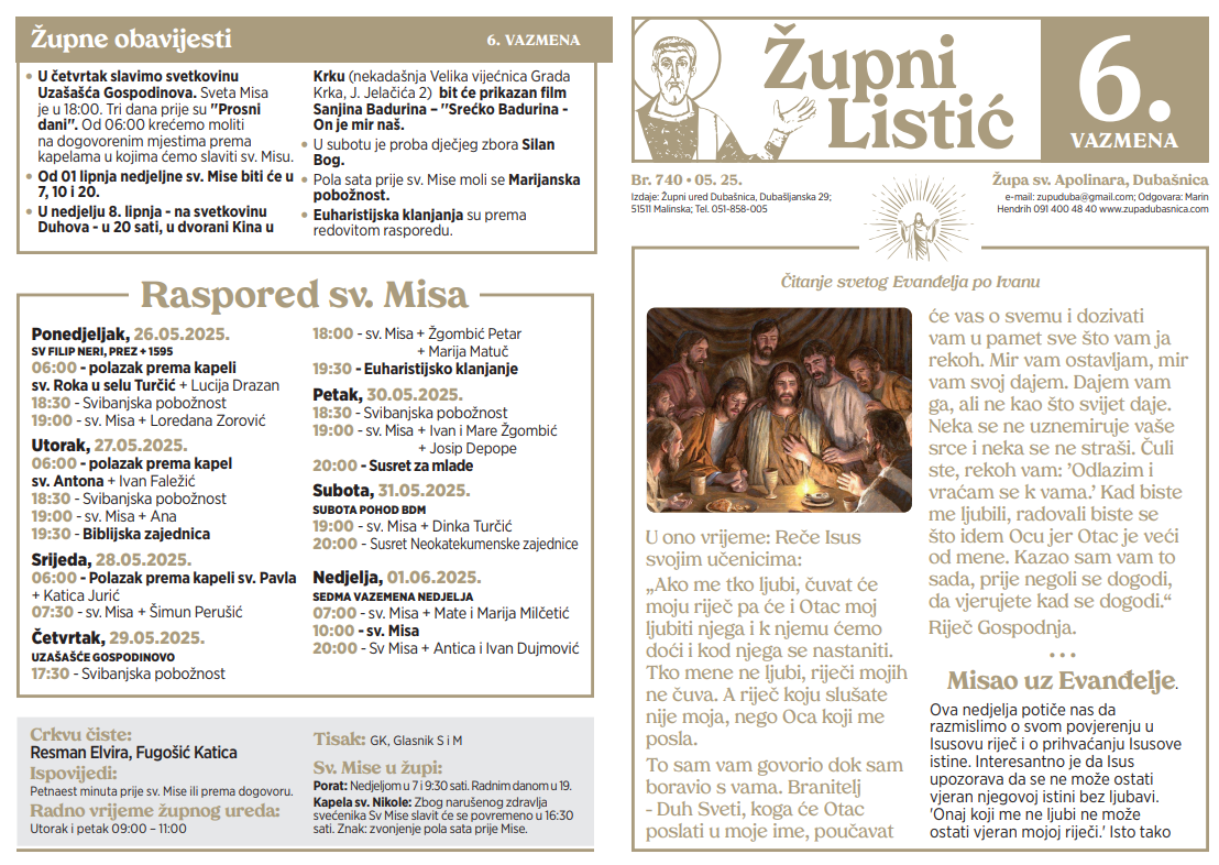 Župa Svetog Apolinara 6. Vazmena nedjelja 24. svibnja 2025.27. svibnja 2025.1 min read Općina Malinska - Dubašnica PREUZMITE: Listić Svetog Apolinara (PDF) Post Views: 85 Share