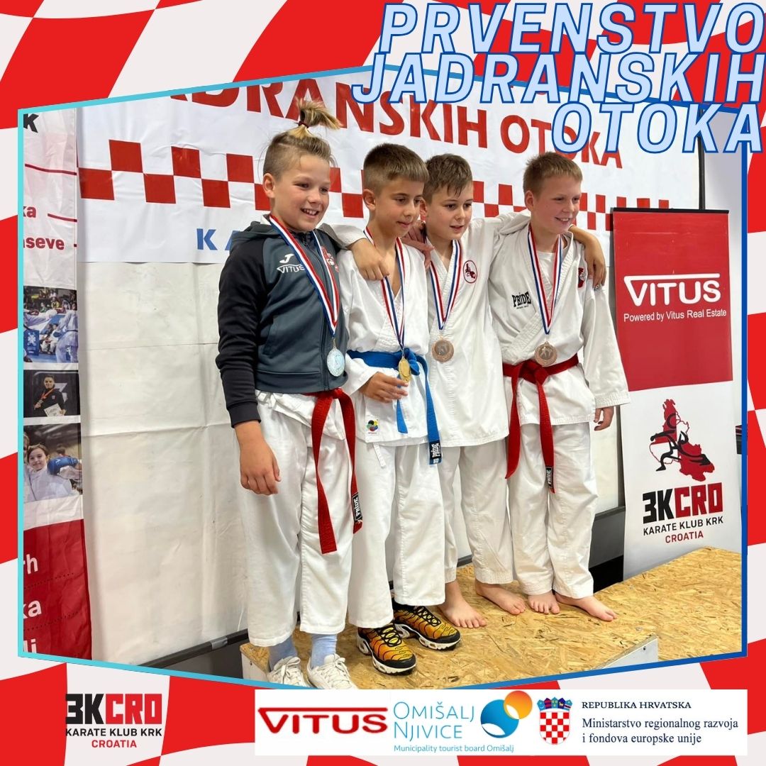 Prvo, a ujedno i povijesno izdanje Prvenstva Jadranskih otoka održano je 25.5. u Društvenom centru Omišalj na otoku Krku i okupilo je impresivnih 311 prijava ukupno četiriju klubova koji su stigli s raznih otoka našeg Jadrana: Krka, Raba, Lošinja i dalekog Brača! U ovom prestižnom natjecanju u borbi za prijelazni pehar najuspješnijeg kluba Jadranskih otoka natjecatelji su se borili u kumiteu i katama. Karate klub Krk Croatia kao domaćin ovog natjecanja nastupio je s ukupno 215 prijava i osvojio ukupno  46 zlatnih medalja,  41 srebrnom i 66 brončanih medalja te time poveo kao vodeći klub Jadranskih otoka u 2025! Donosimo osvajače odličja Karate kluba Krk Croatia.