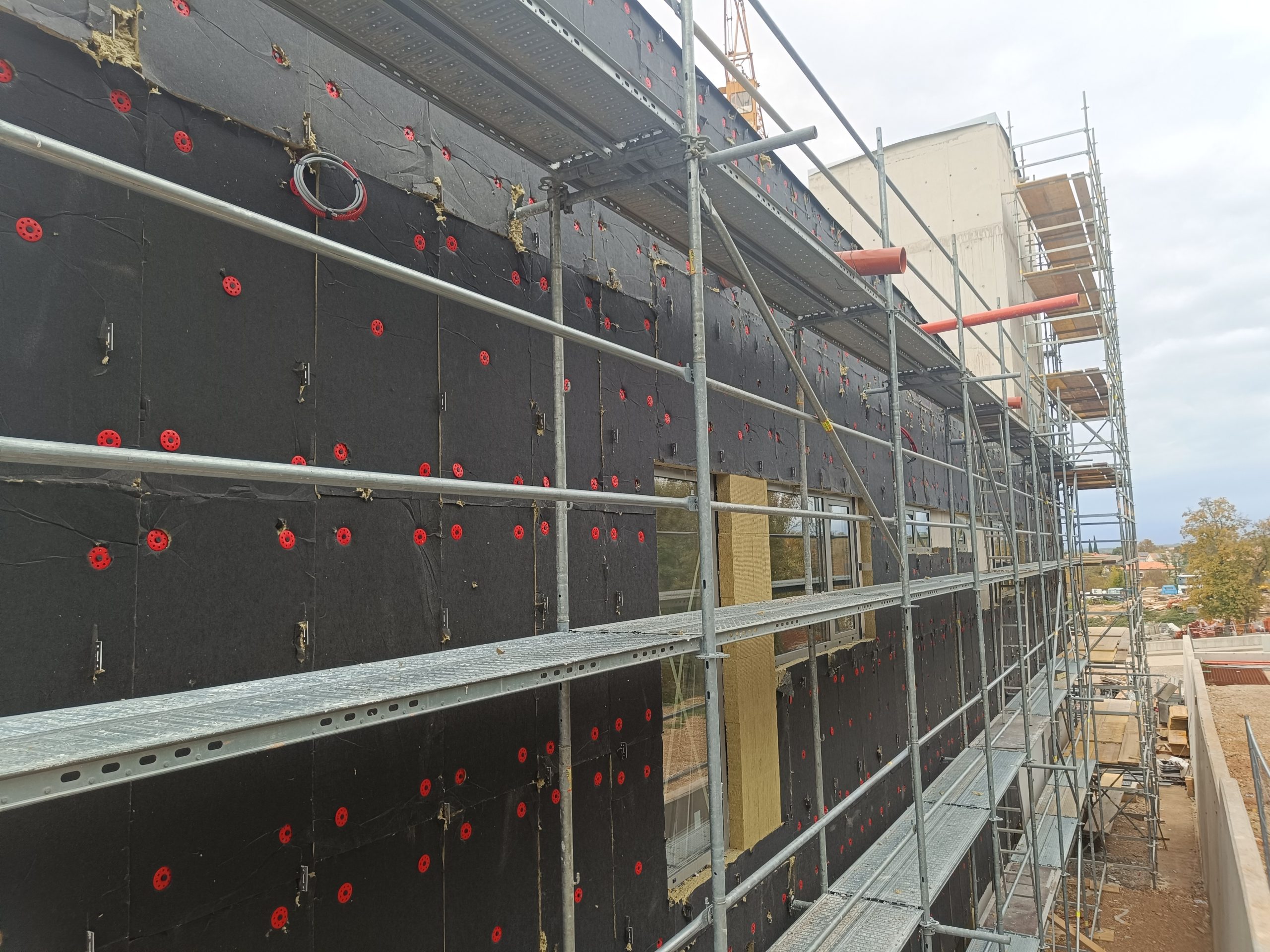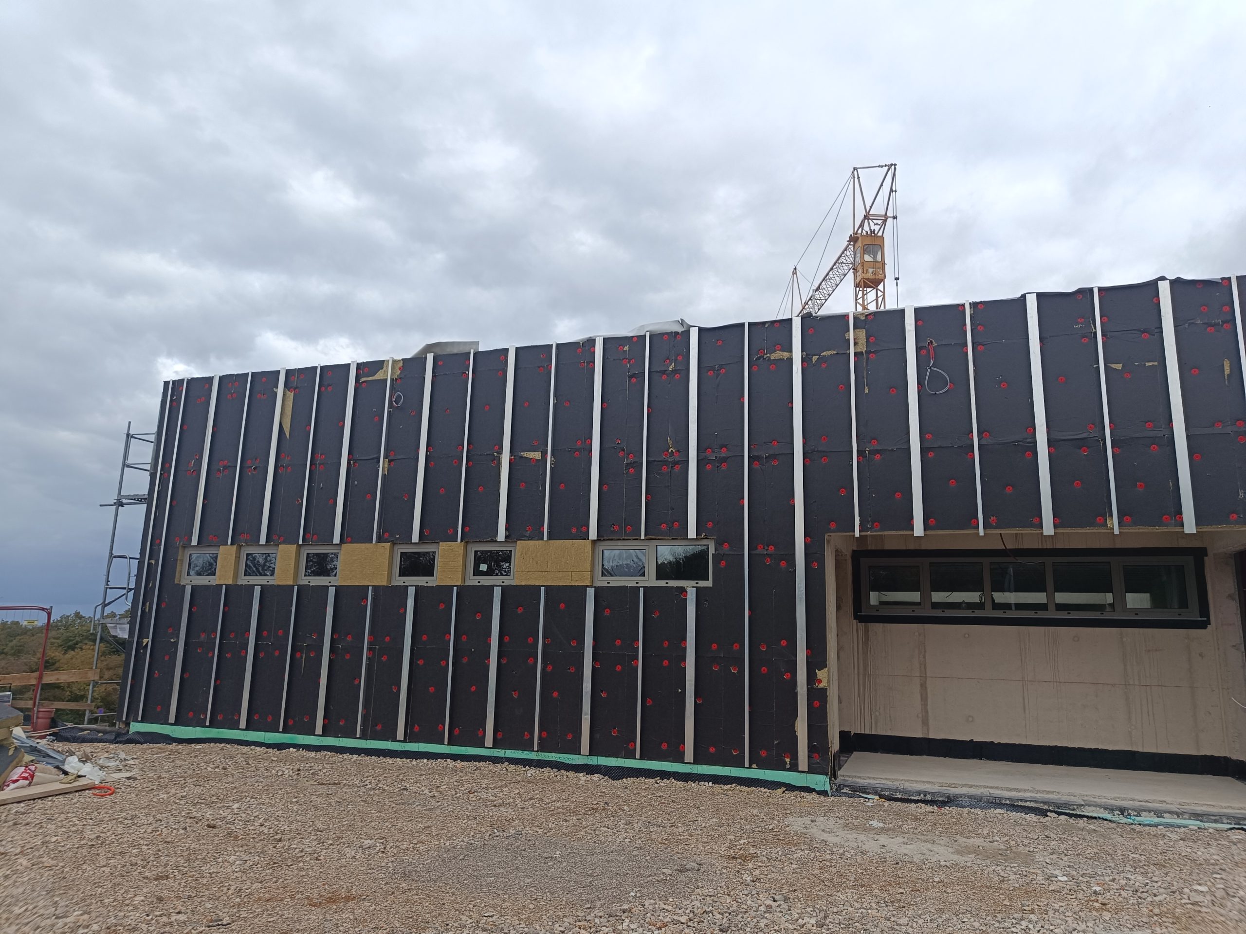 Glavni radovi u listopadu bili su postavljanje svih instalacija u objektu te uređenje unutarnjih zidova. Paralelno se radilo na postavljanju toplinske izolacije na fasadu te toplinske i hidroizolacije krova. Vanjski su zidovi obrađeni ljepilom i armiranom mrežicom, što predstavlja važan korak u pripremi za završnu obradu pročelja.
