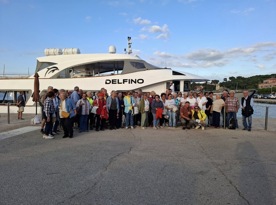Ljubav naših članova prema moru i vožnji brodom pokazala se i na slijedećem izletu koji je bio brodom Delfino po Brijunskom arhipelagu. Već je postalo uobičajeno da dva autobusa kreću na izlete. Iako je bilo oblačno i uz laganu kišicu ipak smo puni optimizma krenuli prema Rovinju.